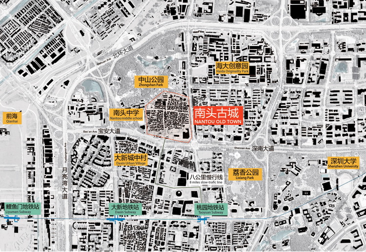 As compared to other urban villages, NantouVillage has preserved its main street pattern after decades of development. Although the old town has changed dramatically,thesouthern gate and eastern gate still exist, and several ancestral halls, temples, old houses, a church and other historical buildings remain as well. Sites of archaeological significance have also been preserved underground. Today, NantouVillagerepresents a symbiosis of an old town of nearly two thousand year’shistoryand a modernurbanized village. It existsinbetweenacity andavillage, and yet it is neither a city nor a village when history intertwines with reality. Underneath the current hustleand bustleof urban reality, hidden cluesofspatial and historicalmemorycan still be found.